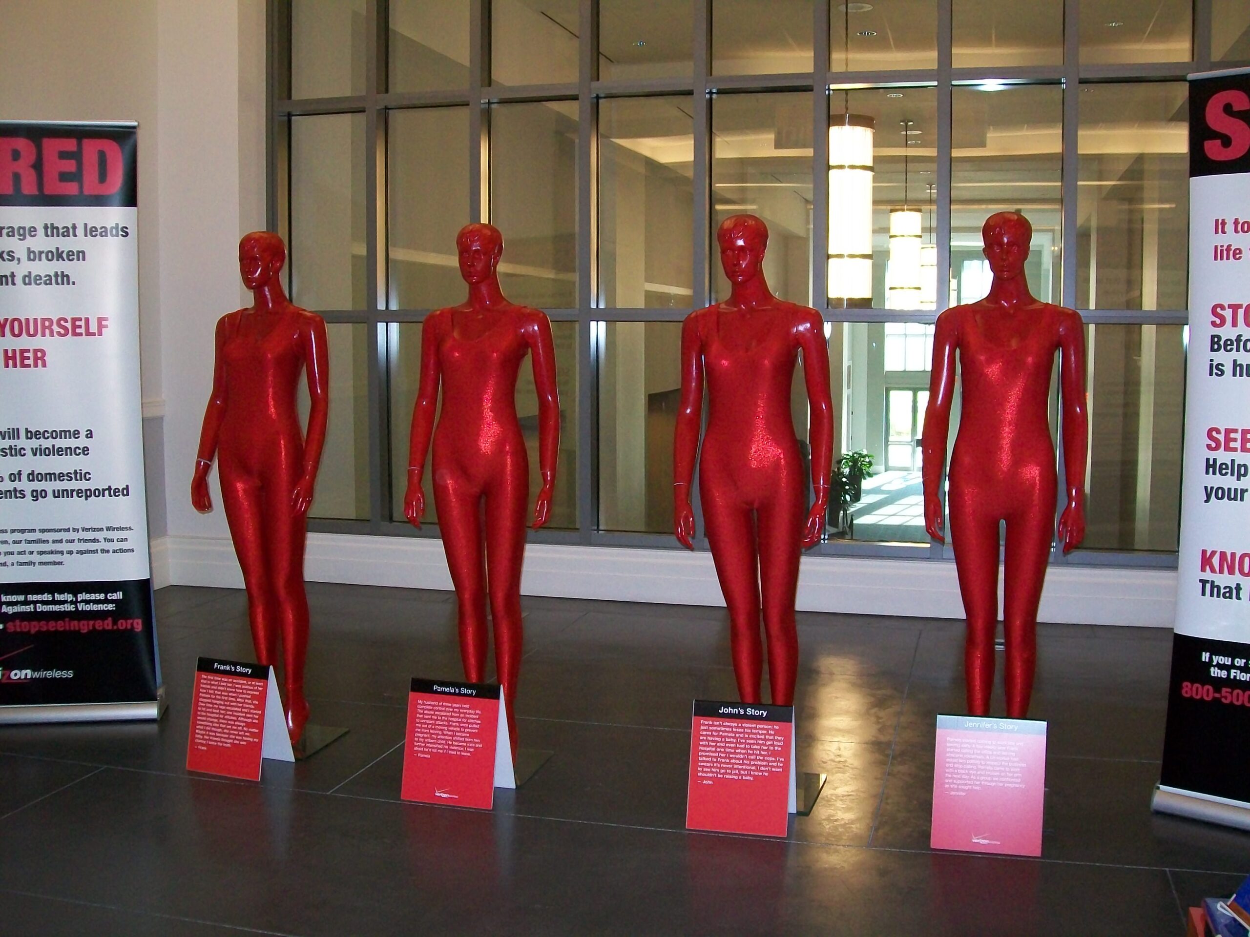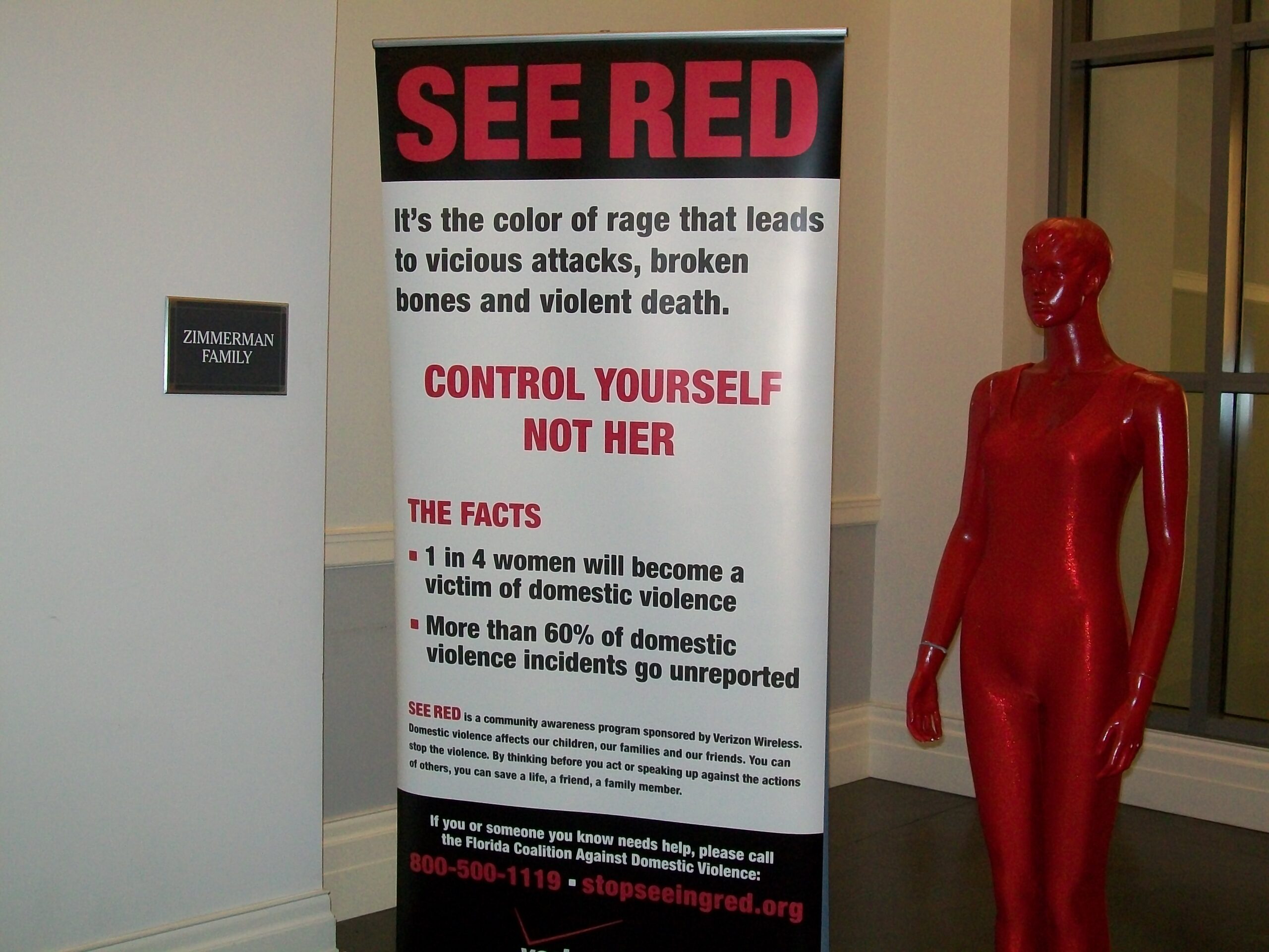 Launched in 2008, SEE RED is tasked with stopping the violence at the source, the batterers. From different perspectives, each of the four aptly dressed red mannequins tells the disturbing story of a domestic violence incident. Flagging the mannequins, two large banners display the chilling facts of domestic violence and provide contact information for where batterers, victims and those who know either can go to get help. The exhibit travels across Florida, generating awareness for the cause.
